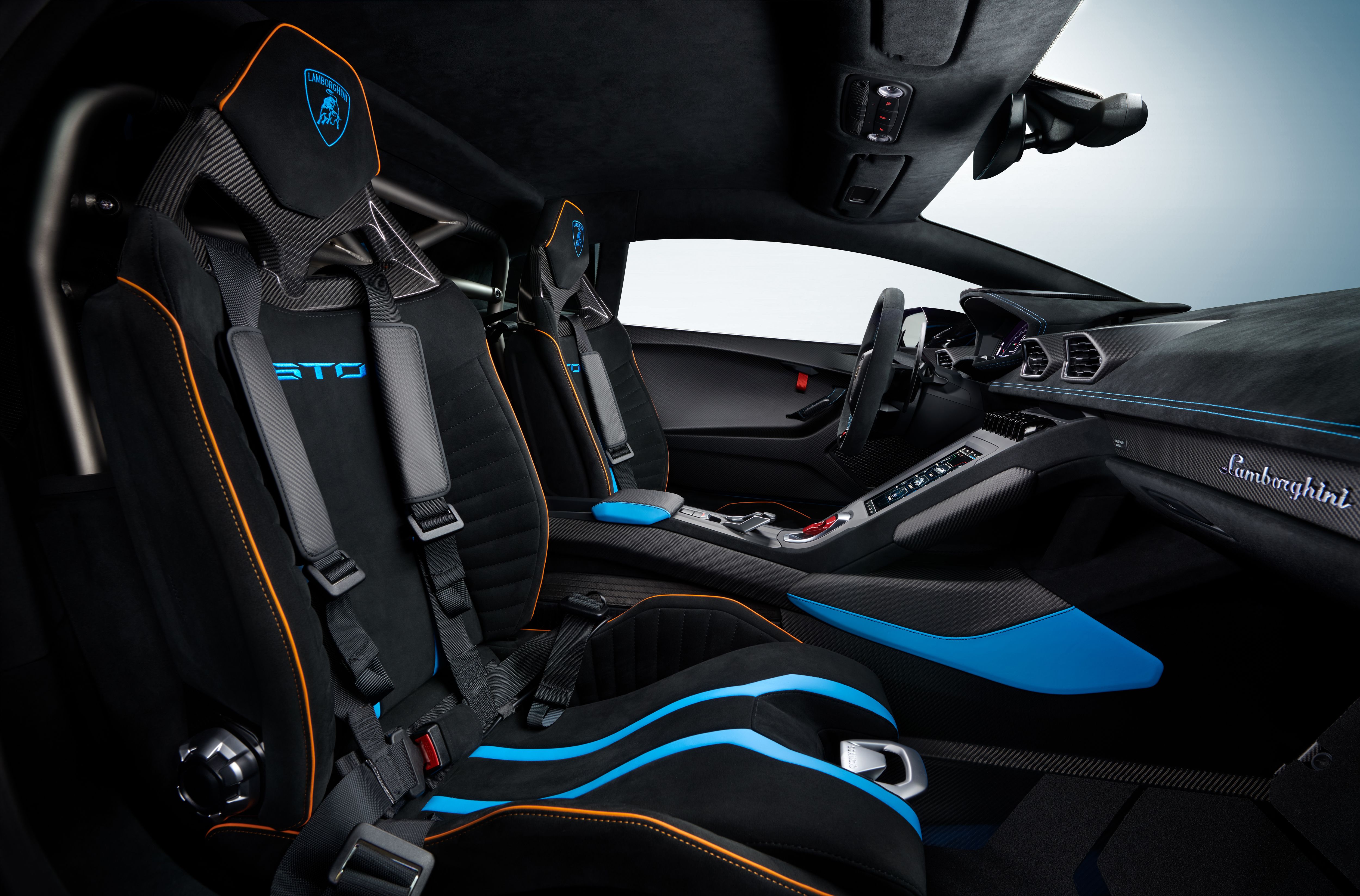 From the moment, the engine is fired up, every aspect of the Huracán STO, inside and out, stirs the soul of a racing driver. The Huracán STO has at its heart the V10 aspirated engine of the Huracán EVO and Super Trofeo, outputting 640 hp (570 kW) and 565 Nm of torque at 6,500 rpm. With an increased wheel track, stiffer suspension bushing, specific anti-roll bars and Lamborghini’s MagneRide 2.0, the STO delivers all the emotion of a racecar while providing a comfortable road experience.